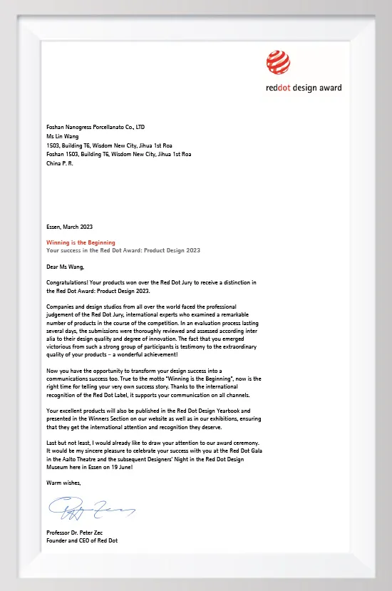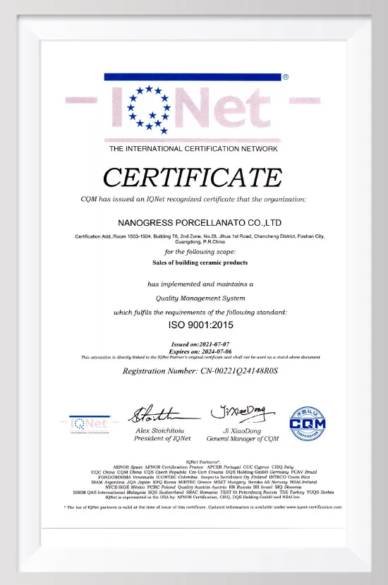 NANOGRESS PORCELLANATO, founded in Milan, Italy, and registered as Nanogress Procellanato Co., Ltd. (Italy), is an international group that integrates the production and sale of porcelain and ceramic tiles to provide quality living inspiration. At the same time, it is also registered in China, whose full name is Foshan Nanogress Porcellanato Co., Ltd., headquartered in Foshan, Guangdong Province.
