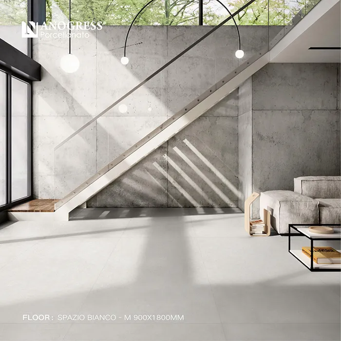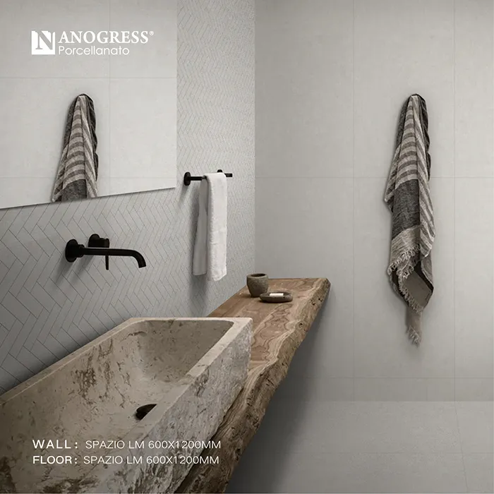 Cement often conveys a serene and tranquil spatial ambiance. The SPAZIO cement tile series resembles a surface with a light sandy texture, embodying a purer, raw cement color. Its surface is pure and clean, while the reticulated shrinkage lines formed after the cement dries are a design philosophy integrated by the designer through extended exposure to natural air-drying conditions. The overall micro-cement style is low-key yet unassuming, allowing everything to return to nature, revealing a simplistic and comfortable spatial aesthetic.